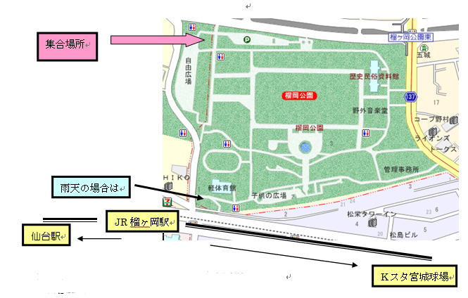 榴ヶ岡公園(地図の矢印場所です)