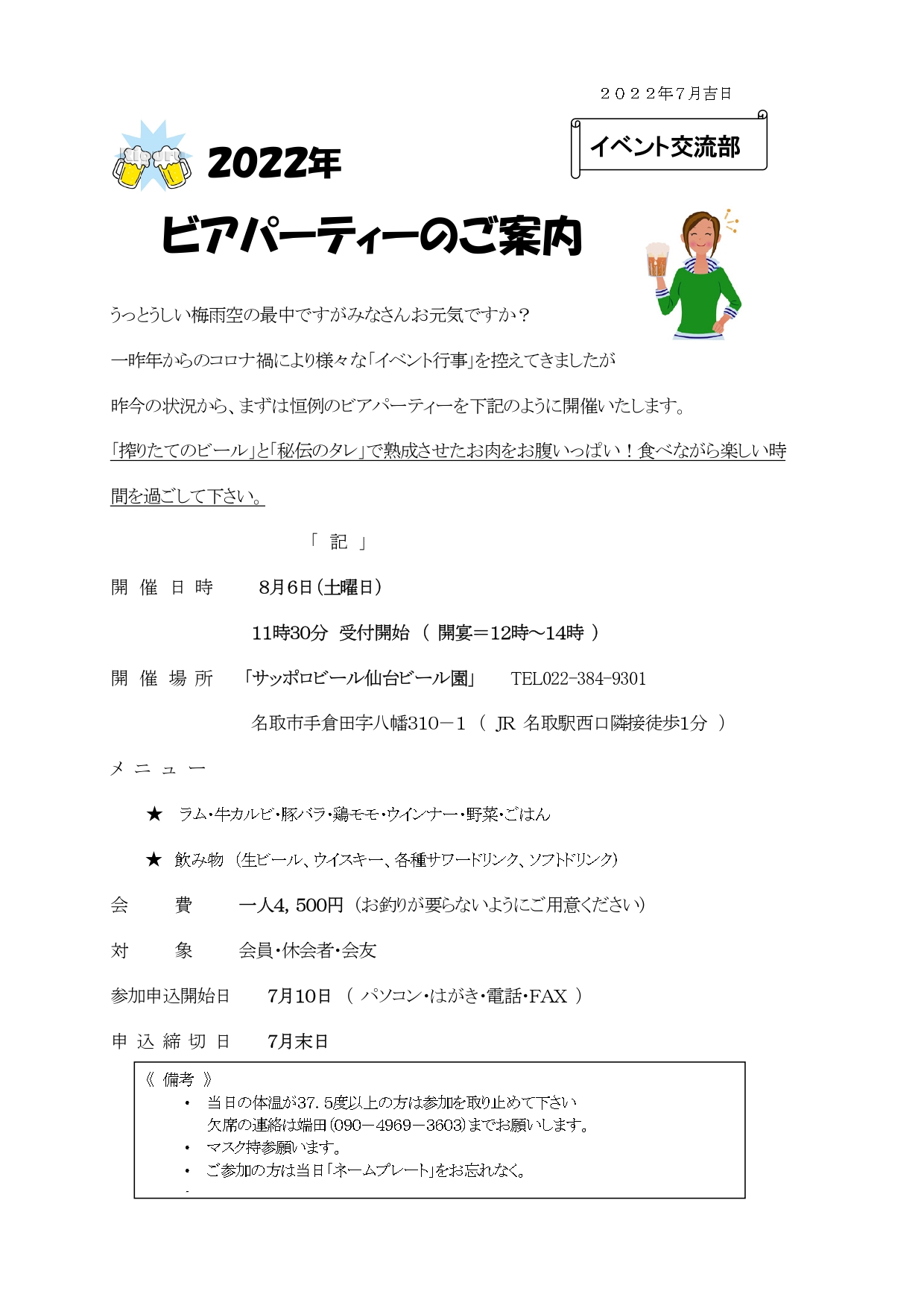 そこで、一日でも早く会の様子を理解し、楽しい男厨活動をしていただくために 「男子厨房に入ろう会」の説明会を下記により開催しますので、万障繰り合わせ のうえご出席いただきますようご案内いたします。
