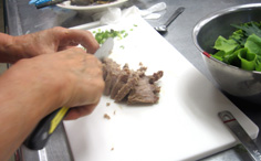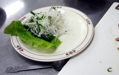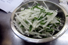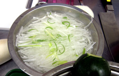 大根は千切り 大葉も細切り。一緒に水にさらす 水気を切っておく 沸いてきたらアクを取り、弱火。途中で何度かアクを取る 竹串を刺して、赤い汁が出なくなったら火を止める。取り出して粗熱を取る タレを作る。良く練るとツヤが出る 最後にすりゴマとネギを加える 豚肉をスライス 皿にサンチュと大根を盛る 今日は、むきホヤも用意してある 細く切って添える タレも盛って完成! 前のページへ 次のページへ