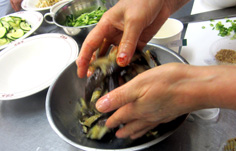手で味を馴染ませる |