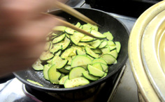 ズッキーニのナムル ズッキーニ 1本 塩 小さじ1/2 サラダ油 大さじ1 ニンニク(微塵切り) 1片 すりゴマ 少々 |