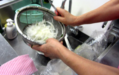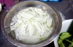 タマネギは薄切りにして、水にさらす |