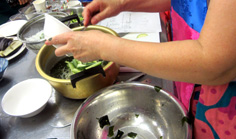 昆布だしにワカメを加える |