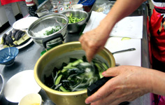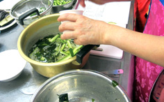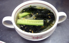 材料 4人分 ワカメ(戻して切る) 適量 キュウリ 1本 タマネギ 1/2個 酢 大さじ2〜3 砂糖 小さじ1/2 塩 小さじ1/2 コンブの出汁 3カップ 白だし 大さじ2 ※ヤムニョン 塩 小さじ1/2 ショウユ・すりゴマ・ゴマ油 各小さじ1 ※注 ズッキーニはナムル用 |