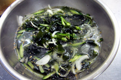 最初にワカメをヤムニョンで和える |