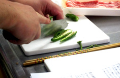しし唐は軸を取り、縦半分に切る |