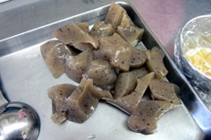 コンニャクはちぎり、茹でる |