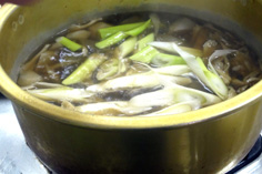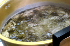 沸いたらキノコを加える |