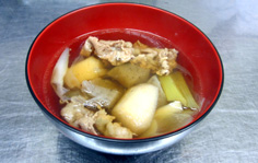 材料 4人分 里芋(ゆでる) 200g 牛肉スライス 100g コンニャク 100g シメジ 50g 舞茸 50g ネギ 50g ゴボウ 20g ※調味料 水 1500cc ショウユ 55cc ミリン 50cc 砂糖 15g ほんだし 20g |