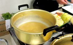 鍋に水1.8リットルと固形ブイヨンを入れて沸かし |