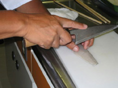 ハケで丁寧に粉を付ける。身を開くようにして間にも付ける |