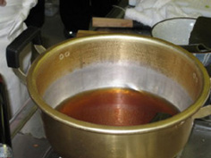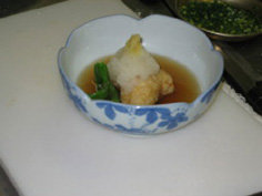 1人前は、煮切ったみりん 10cc だし汁 100cc 薄口醤油 10cc これに昆布を少し入れて火にかけ、おろし煮のだしを仕込みます |