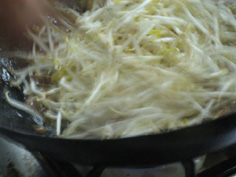 残った油にもやしを入れ、すぐ取り出す |
