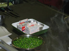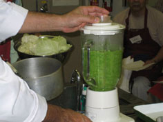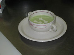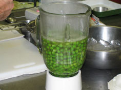 (4人分) 冷凍グリンピース 400g 水 500cc 固形ブイヨンの素 2個 砂糖 25g 塩 8g 生クリーム 200cc (飾りに少し取っておく) ホワイトペッパー 少々 |