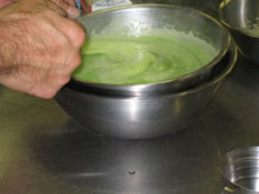 氷水を入れたボールを下にあてて冷やす。底からかき混ぜながら粗熱をとって、そのままおく |