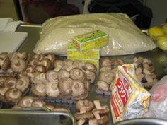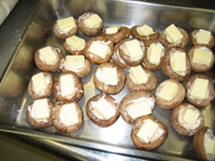 小麦粉と水少量でノリを作り、生椎茸のくぼみに塗り、チーズをのせる |