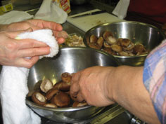 生椎茸は石づきを取り、ふきんで良く拭いてから塩、こしょうをふる |