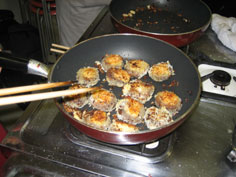 フライパンに少し多めの油を入れて弱火で焼く |