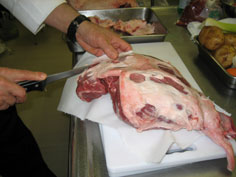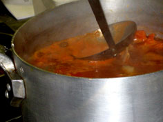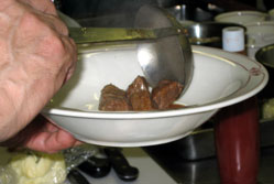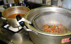 肉が柔らかくなったらスープを漉す。肉と野菜を分ける(野菜は使わない) |