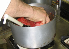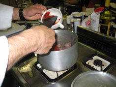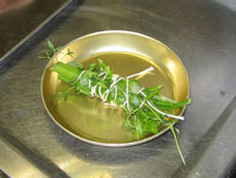 ブイヨンが煮立ったら、ブーケガルニを入れる |
