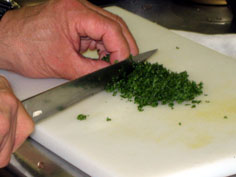 香草の茎や葉をタコ糸でしっかり縛り、ブーケガルニを作る |