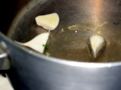 鍋にサラダ油とにんにくを入れ火を付け、香りをだす |