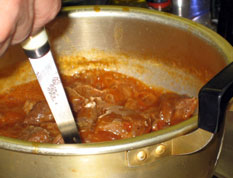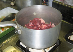 ラム肉に焼き色が付いたら、トマトペーストも入れる |
