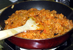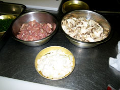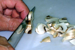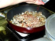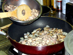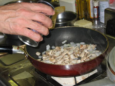 別に玉ねぎとマッシュルームをしんなりするまで炒め、塩・コショウで軽く味をつける |