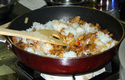 全体が馴染みパラッとしたら、バター少量を加え塩・コショウで味を整える |