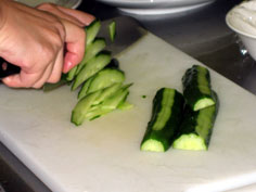 きゅうりは所どころ皮をむき斜め薄切り |