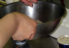 塩少々と片栗粉少々で下味をつける |