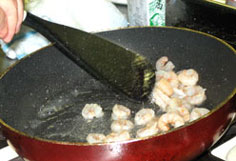 油少々でエビを炒める |