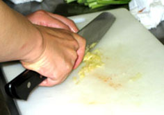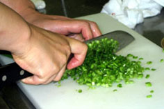 ニラも細かく切る |