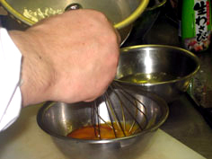 卵黄5個を溶き、煮切り醤油を少しずつ加えて混ぜ合わせる |