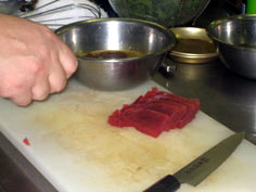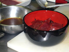 (5人分) 煮切り醤油を作り、冷ましておく 醤油 50cc みりん 10cc 水 20cc |