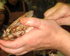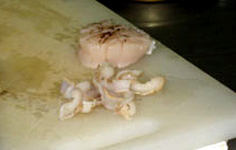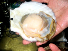 帆立をむく。殻の色が茶色の方を上にして、と覚えておくと分かりやすい |