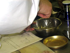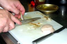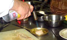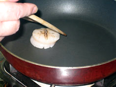 家庭では、テフロン加工のフライパンに油を引かずに入れ、軽く焼く |