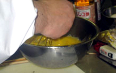 玉子を良く溶いておく。白身を切っておかないと後で漉したとき残る |