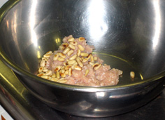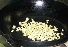 松の実を薄く色付くように、から煎り。弱火ですること |