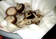 石づきを取った生しいたけとほぐしたシメジを茹でる。1%の塩をいれる(1ℓの湯に塩10g) |