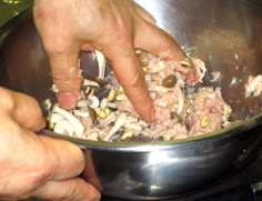シメジと生パン粉、塩少々、コショウを加えて良く練る |