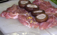 生椎茸の上に、練った鶏ひき肉を乗せて巻く |