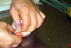 たこ糸、ラップを取り除いて、1cm位に切りそろえる |