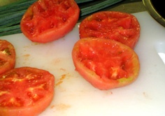 トマトは、塩少々を入れた熱湯で茹で、水にとってから湯むき |