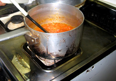 にんにくは冷たいオリーブ油に入れてから火を付け、弱火でゆっくり香りを出す |