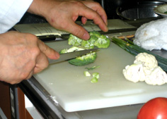 付け合せのブロッコリーとカリフラワーを小房に分け |