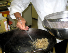 さっと火を通したら、すぐ引き上げる。長く入れると硬くなって、戻すのに時間がかかる |