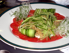 皿にトマトと白髪ネギをこのように飾る |