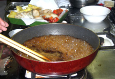 タレを火にかけて、沸いてきたら |