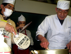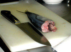 まぐろ、はまちはサクの高い方から低い方にむけて薄く切る |